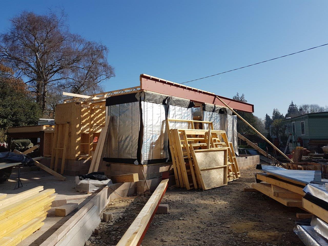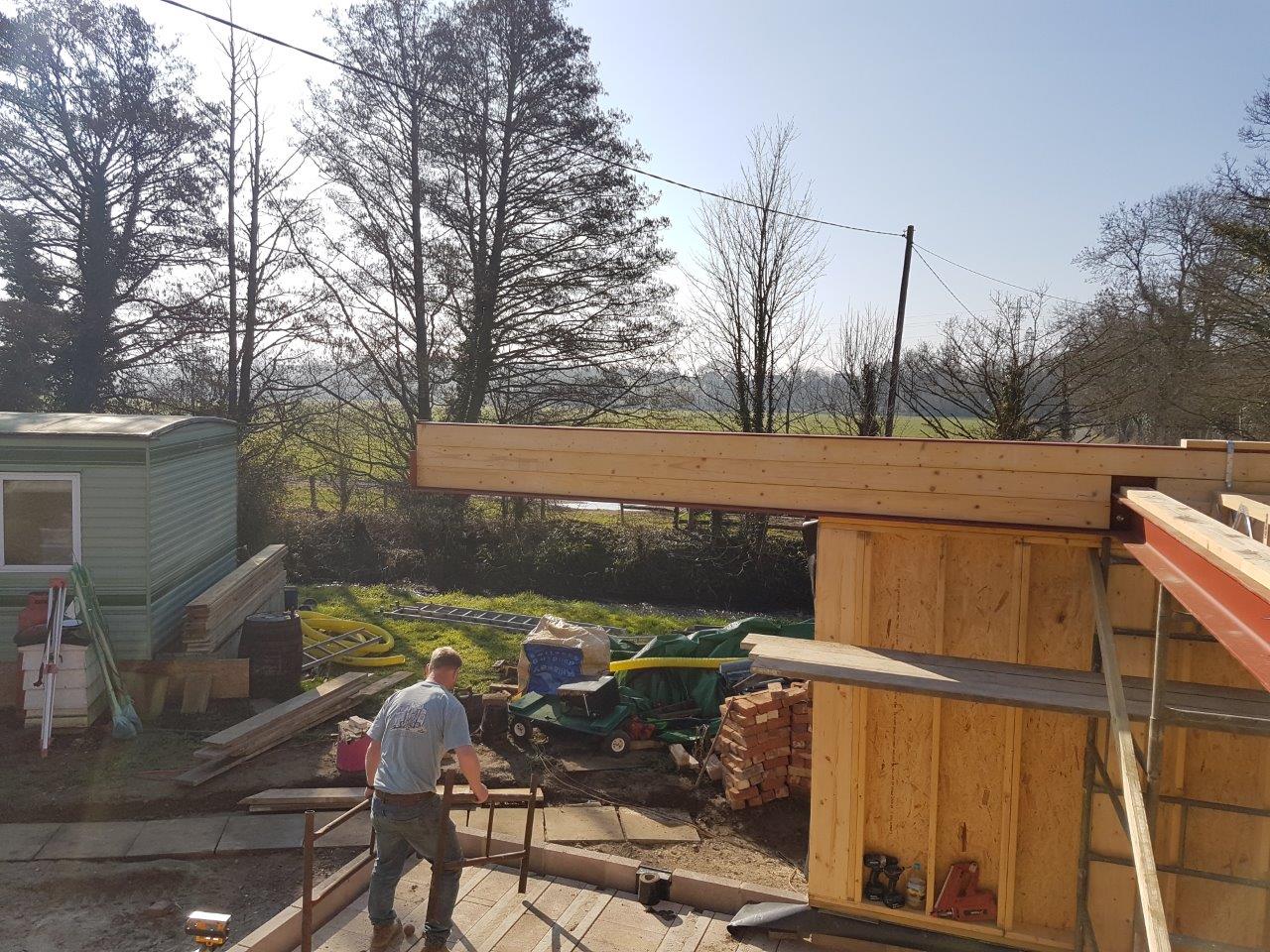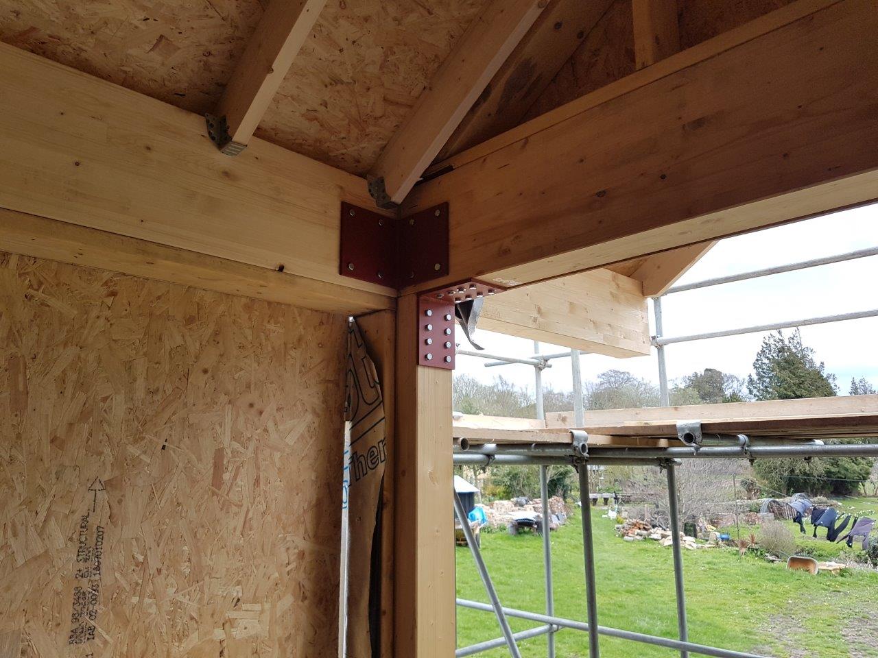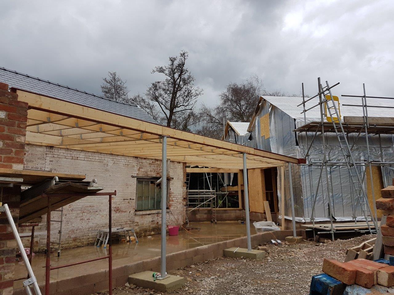 The project being a building of two halves is clearly maintained. The new timber frame in-keeping with the existing buildings proportions and additional architectural quirks together with the link/ wrap around between the two buildings lead to an interesting and surprisingly complex timber frame design.